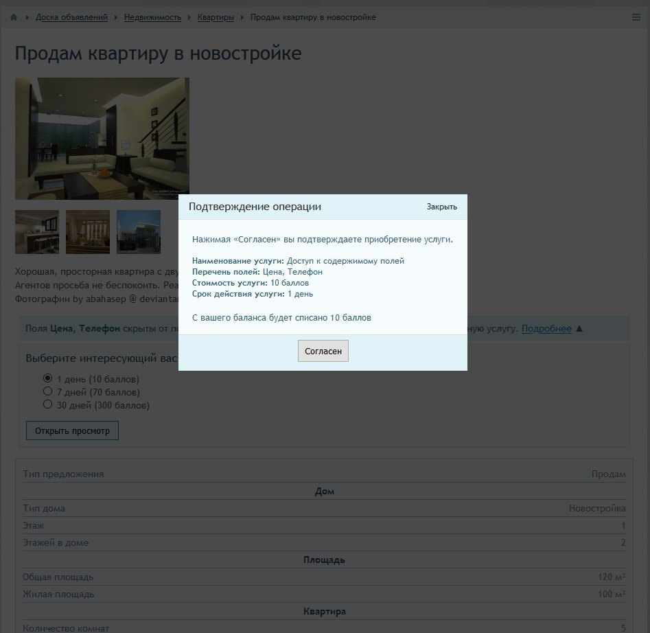 - Временный выкуп пользователем. Содержимое полей после оплаты пользователем открывается для данного пользователя на предусмотренный тарифом срок.